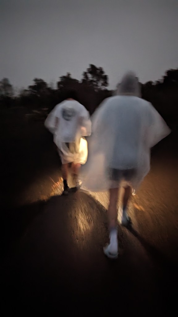 The next day, the plan was to head to Volcanoes National Park, hit up the Volcano Winery on the way if we could, Papa had a colleague who lived in Hilo so we’d meet up for a minute. But first, they had to go to their rescheduled timeshare tour. This took far longer than it should have since Papa hasn’t met a timeshare he could say no to. We didn’t leave until very late, so we decided to meet the friend at Volcano Winery which was when the rain rolled in. Quick review on the winery, the Volcano Red and the Volcano Blush were great and we ordered a few bottles to be shipped home. The rest were very sweet and we didn’t even finish the tasting. The volcano artwork on the walls is absolutely gorgeous and the bacon cheese ball was a great snack! By the time we got to Volcanoes National Park, it was foggy, cloud covered, and getting dark very quickly. (At this point, Papa has also been coughing the entire way over and I grabbed him a mask at the national park’s visitor center. About this time, he’s starting to get the chills and not feel well but I’ll get to that in a minute…) We made it to the first stop on the loop as the sun was setting and the fog was so thick that you couldn’t see anything. Grandma, my husband, the boys and I did the little hike through the Devastation Trail where the sun set, we couldn’t see anything anymore and headed back to the car to decide what to do. Decided the lava tunnel could be done and maybe there was a glow from Kīlauea. There was not, we just looked into the dark at where we guessed there was a crater. We wrapped it up. Headed to the gift store to get an ornament, water, bathroom break, and headed out. At this point, Papa is going downhill quickly and we are suspecting he has covid which we have all been dreading since the very beginning as he has pulmonary fibrosis and this could be devastating. Grandma and I were dropped off at Walgreens to make sure that we had supplies for him before everything closed and the boys all headed to pick up McDonald’s and we started the trek back across the island.