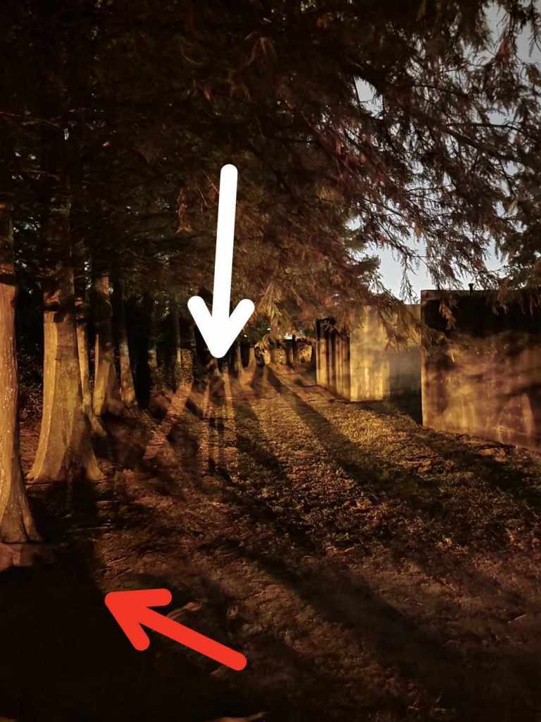 After the preplanning around the Cemetery Tour after dark (we booked the 9:30PM tour), we found New Orleans Cemetery Bus Tour After Dark* led by Geoff. This. Was. AMAZING! I really cannot say enough about this great tour but I’ll try to limit it. Half of our group are believers in the paranormal and belief we have or are experiencing it, three are probably believers but can’t point to anything, one is a definite skeptic. Regardless of where everyone stood, the tour spoke to everyone and was informative, fun and funny thanks to Geoff, and spooky as hell. My sister and I had several photos that definitely make us think we caught something while we were in the mass graves of the yellow fever and Hurricane Katrina Memorial. This tour takes you to places A.) you wouldn’t think to go otherwise, B.) you can’t go in without this specific tour like the Odd Fellows Cemetery. Thanks to Geoff, who is an Odd Fellow, we were able to get in! Great little stop in the middle for beignets, bathroom break, and beverage refills which was nice. Seriously, if you are going to New Orleans, I would take this tour. (Photo below – red is my sis’s shadow; white – you decide, we were all back at the bus…)