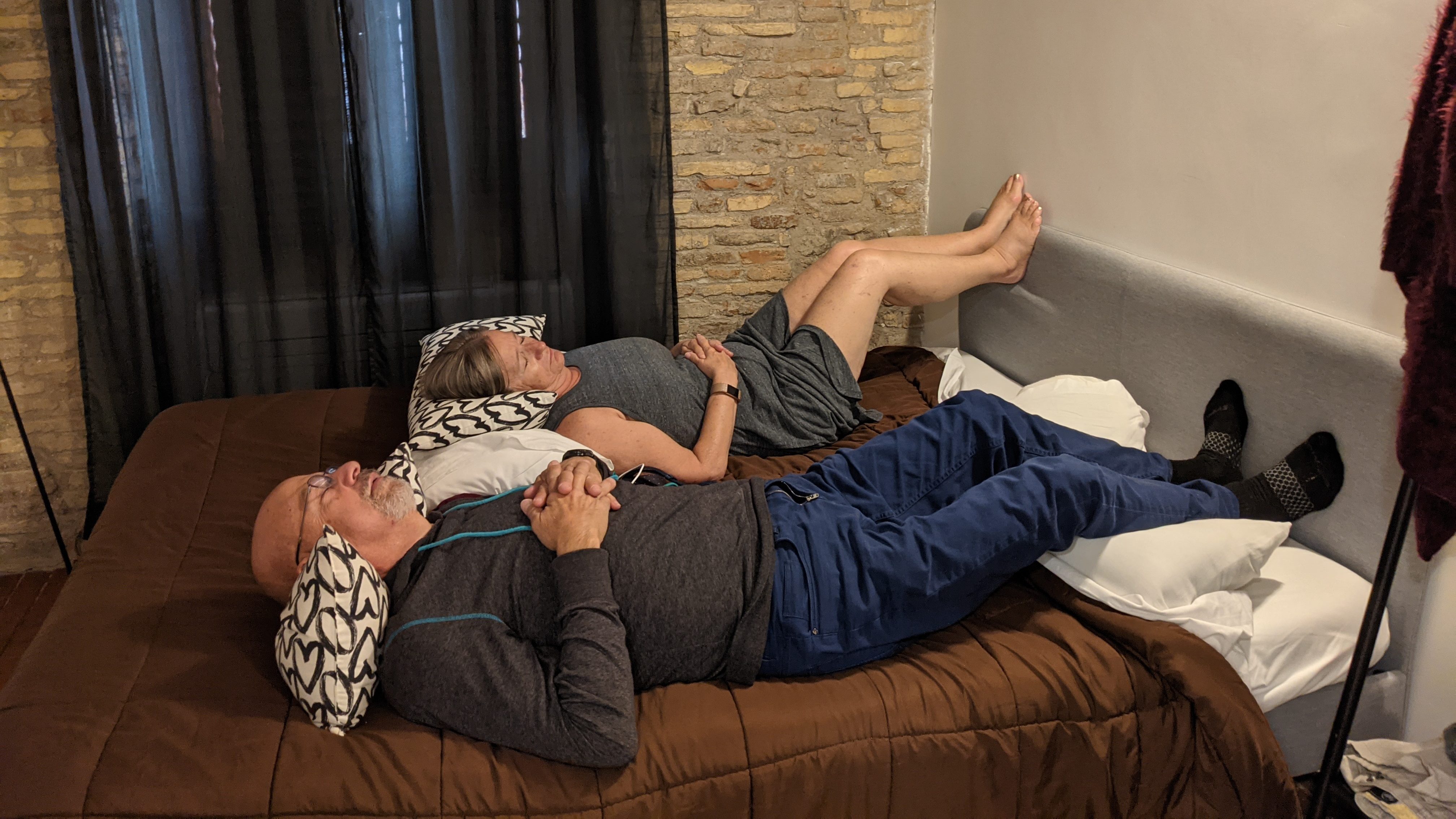 My parents are the best; also as different as day and night. My mom is easy going and will just pretty go wherever I tell her we’re going. My dad is the energizer bunny and wants to be doing all the things, all the time. Recently, we did break them on our trip to Europe but after a short nap, they were joining us at a Roma football game.